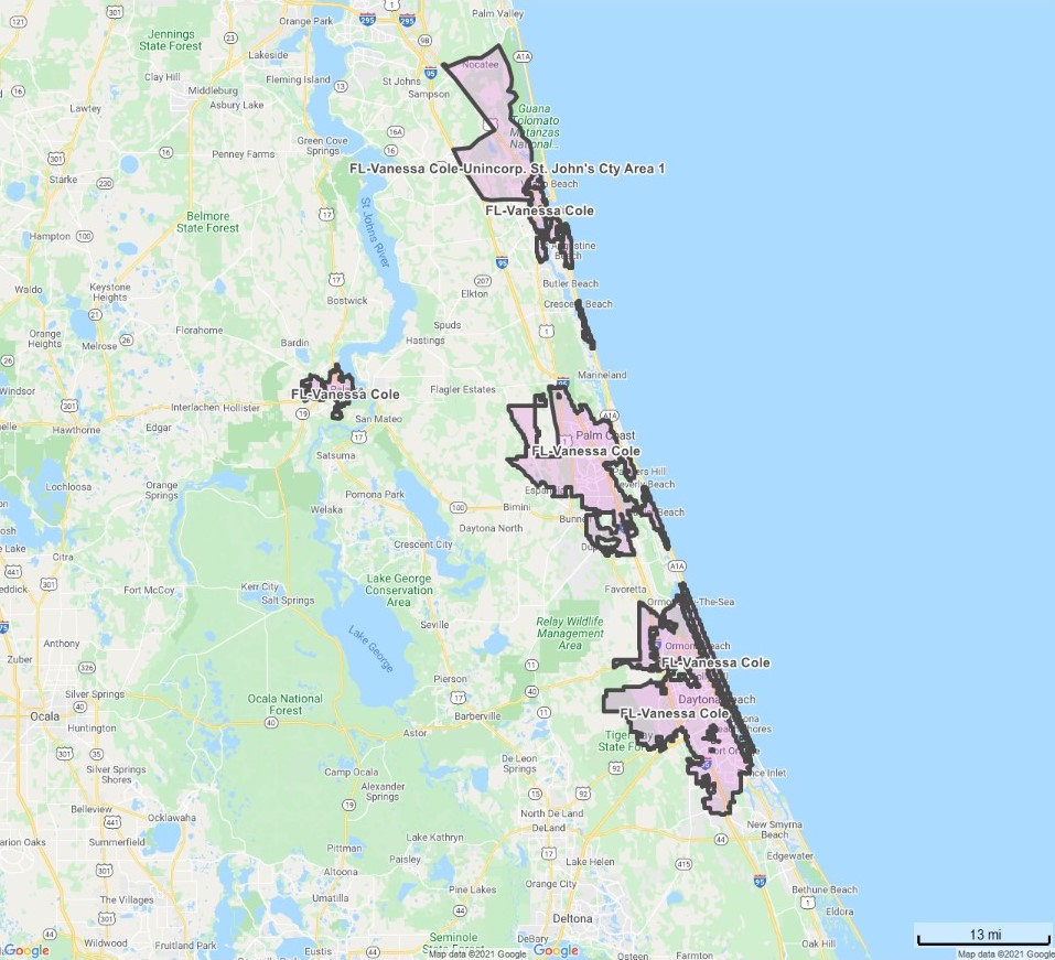 East: The Intercoastal Waterway at CR-210(Palm Valley Road) on the north. Headed south along the Intercoastal Waterway to the St. Augustine city line. South from the St. Augustine City line at the intersection of SR-207 and US-1. South along US-1 to SR-206 on the south.